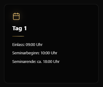 Wichtig: Bitte erscheinen Sie rechtzeitig zum Einlass, damit wir pünktlich beginnen können. Bei Fragen zur Anreise oder zum Ablauf stehen wir Ihnen jederzeit gerne zur Verfügung.